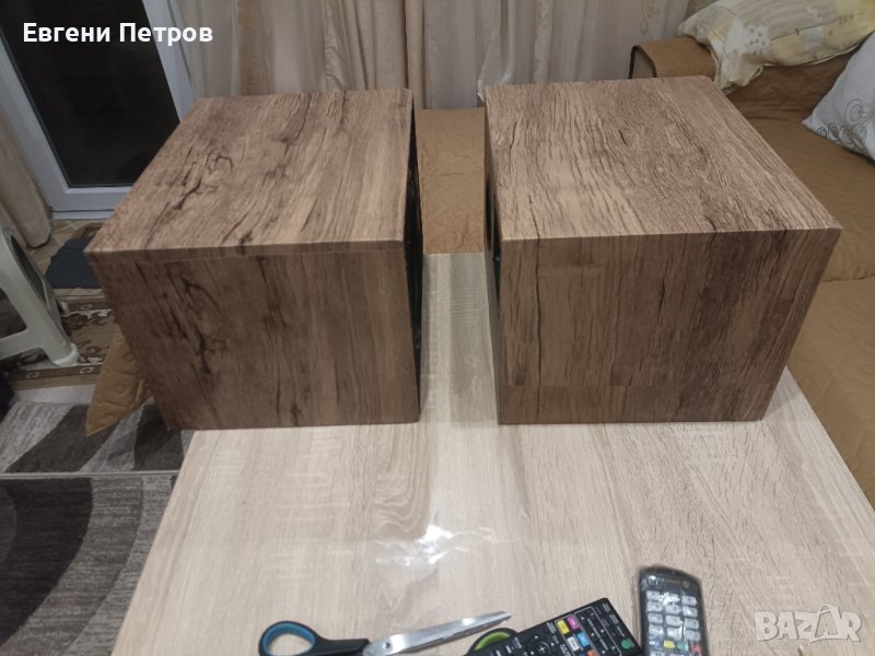 Букшелф с 8' бас,от една, неособено позната марка в БГ.,,Спасен" от мундарските лапи на пазарските аудио джамбази от ,,р(и)мски" произход именно поради факта,че свири изключително добре,т.нар.аудиофилско звучене.Притежавам друг чифт като тези,който закупих случайно преди няколко години и от тогава са ми любими.С колкото по-качествена апаратура ги ползвате,толкова по-добре звучат,разбира се,далеч съм от идеята за уникалност,но определено са страхотни като съотношение цена-качество.Създават присъствие като на големи ОТ-изпробвани с ламповия ми пред и два вида крайни стъпала, също така с хибриден интегриран и класически транзисторен усилвател.Поради ужасното състояние на оригиналното фолио същото беше разлепено и облепени отново от мен(с моите скромни способности),като в избраният произволен цвят бе търсена някаква универсалност.Фолиото е с лек релеф.Поради спецификата на кутиите има известни несъвършенства в процеса на ,,реставриране",но не говорим за ,,възкресяване" все пак.Плата на решетките също има прокъсвания на места,но нищо фатално.Убеден съм,че при прослушване всички тези недостатъци ще останат на заден план,защото тези ОТ не остъпват на подобни от неколкократно по-скъпи и по-популярни брандове.Минимум са на нивото на