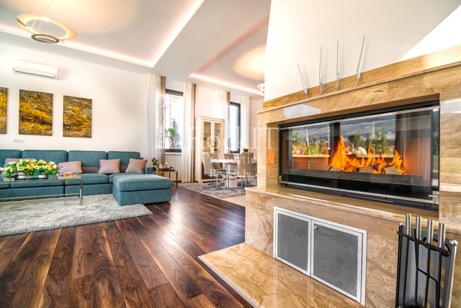 'RockIT Properties' is pleased to present to you a detached house located in a gated complex located 1.5 km. from the IKEA store and Ring Mall. The place is far from the noise of the hectic city, but also close enough to the capital, thanks to the good road infrastructure. The panoramic view of Vitosha mountain and all of Sofia is incomparable, at any time of the day.