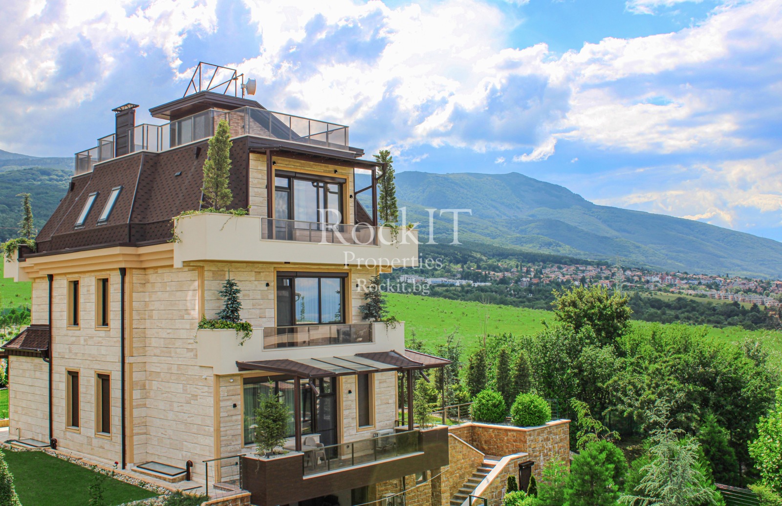'RockIT Properties' има удоволствието да Ви представи самостоятелна къща намираща се в комплекс от затворен тип намиращ на 1.5 км. от магазин IКЕА и Ring Mall. Мястото е далеч от шума на забързания град, но и достатъчно близо до столицата, благодарение на добрата пътна инфраструктура. Панорамната гледка към Витоша планина и цяла София е несравнима, по всяко време на деня.