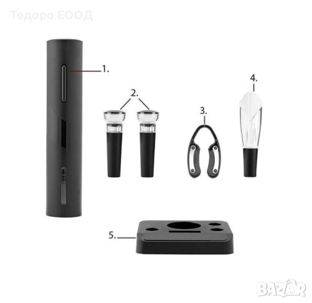 Луксозен комплект електрически тирбушон за вино с поставка → Обява 44356163