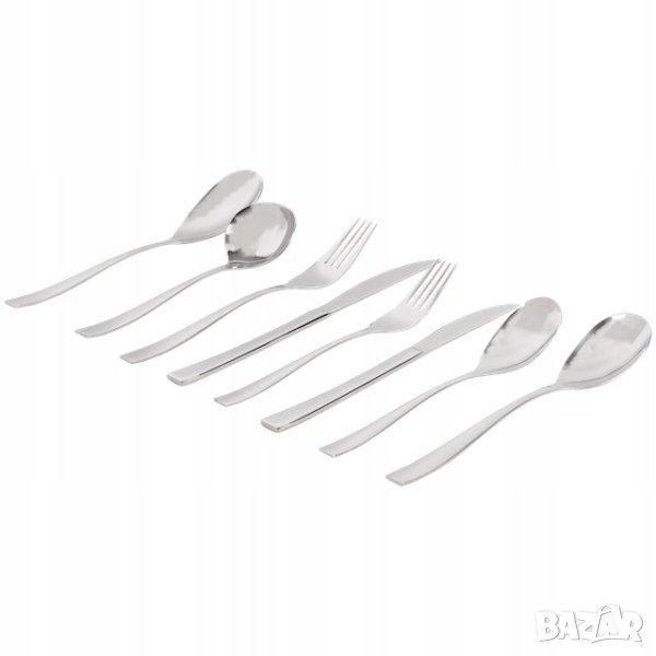 Този луксозен комплект прибори за хранене включва следните елементи: 6 лъжици за маса, 6 вилици за маса, 6 ножа за маса, 6 десертни лъжици, 6 десертни вилици, 6 десертни ножа, 1 лъжица за сос и 2 лъжици за сервиране.