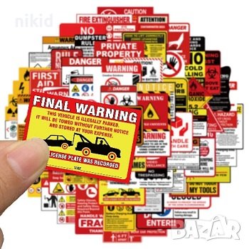 75 бр Внимание опасност предупредителни знаци табели стикери самозалепващи лепенки