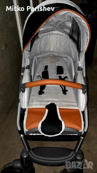 Количката е в добро състояние с марката BABYACTIVE. Комплектът включва: алуминиева рама, кош за новородено с покривало, летен кош с покривало за крачетата, стол за кола 0-13 кг, чанта за принадлежности, дъждобран.Към деткста количка има подарък вана за къпане BUBBLE с марката CANGAROO. Комплектът включва: вана за къпане, стабилна стойка, две шишенца за шампоан и за душ-гел, подложка за къпане 50X27X20 см.