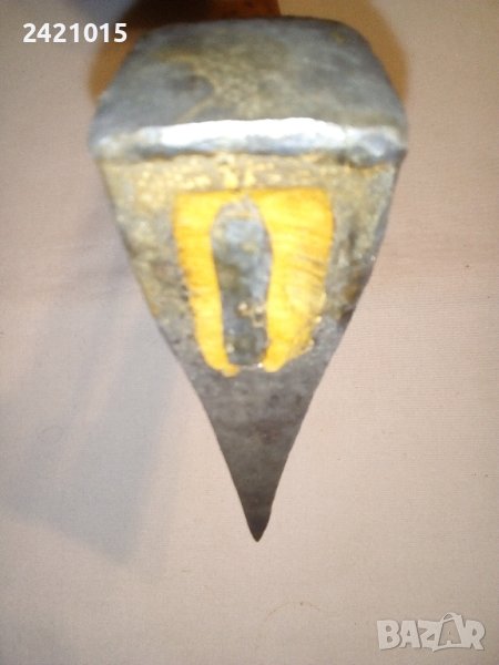 Стара кована брадвичка,тегло-710 гр,глава-12х12 см,здрава дръжка от ясен-33 см,кожен калъф.
