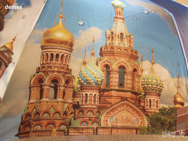 Нов сгъваем луксозен дамски чадър с изгледи от Санкт Петербург, Русия.