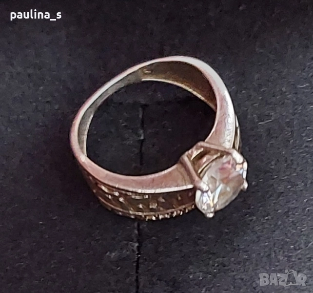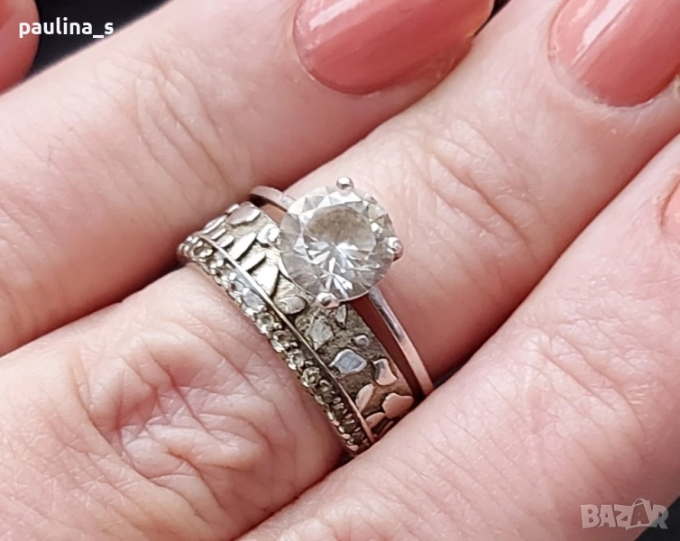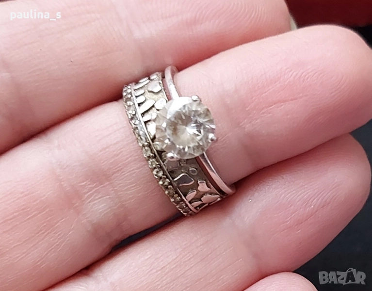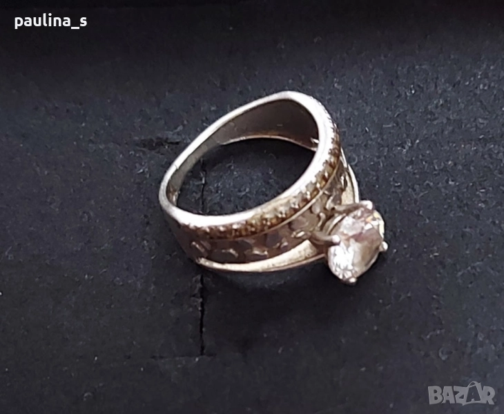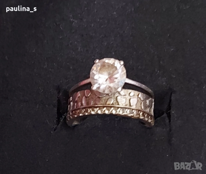 3️⃣. Цената е крайна 64,99лв / 32,5 евро. Класически модел двоен сребърен пръстен, тип годежен с един голям циркон. Размер 16,5мм за нежни пръсти. В автентичен вид, подходящ е и за подарък, няма дефекти.