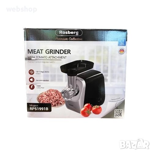 Електрическа месомелачка Rosberg 1300W с приставка за домати