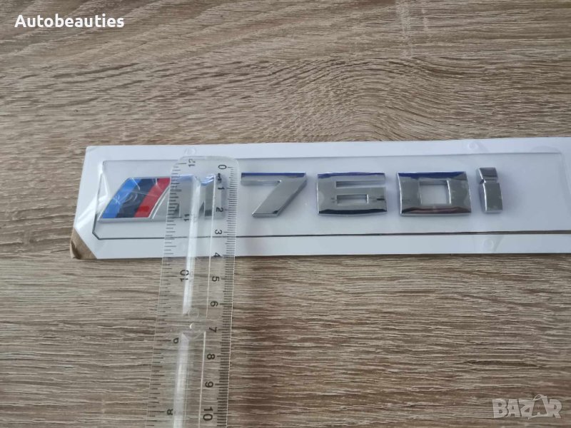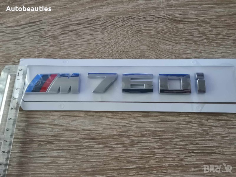 Нова емблема в сребрист гланц за модела на BMW М760i. Размерите са дадени на снимките. Височината на буквите е 2 см.