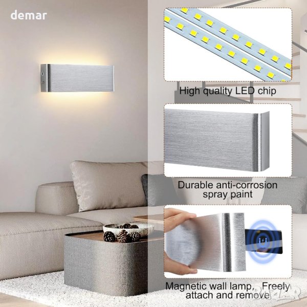 Светодиодната стенна лампа Lightsjoy е многофункционално, работещо с батерии тяло, което предлага до 24 часа светлина при най-ниската си настройка и 16 часа при най-високата, което я прави идеална както за практично осветление, така и за декоративна атмосфера. Разполага с USB-C кабел за зареждане за удобство. С три регулируеми цветови температури (3000K топло бяло, 4500K неутрално бяло и 6000K студено бяло) и безстепенно затъмняване, тази стенна лампа се адаптира към различни стилове на помещения и нужди от осветление. Модернизираният LED чип осигурява равномерно, енергийно ефективно осветление, което е приятно за очите, с продължителност на живот до 50 000 часа. Инсталирането е лесно, благодарение на опцията за магнитно закрепване с 3M лепило за настройка без пробиване или може да се монтира традиционно с винтове. Тази мултифункционална лампа е идеална за спални, всекидневни, коридори и дори като преносима лампа за дейности на открито или спешни случаи.