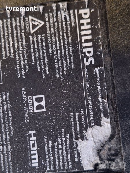 Power Supply TPV 715GA052-P01-000-003H PHILIPS 43PUS6554/12 for 40inc DISPLAY TPT430U3-EGYSKA.G REV: → Обява 44371001