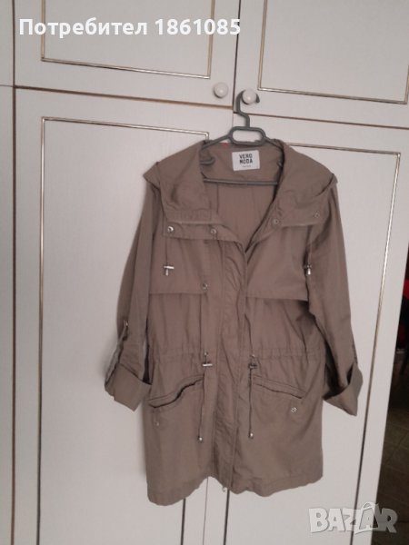 Нов дамски шлифер, или тънко яке, с гугла. Вносно е, без забележки, размер 40-42 европейски.Приятен цвят, символична цена.