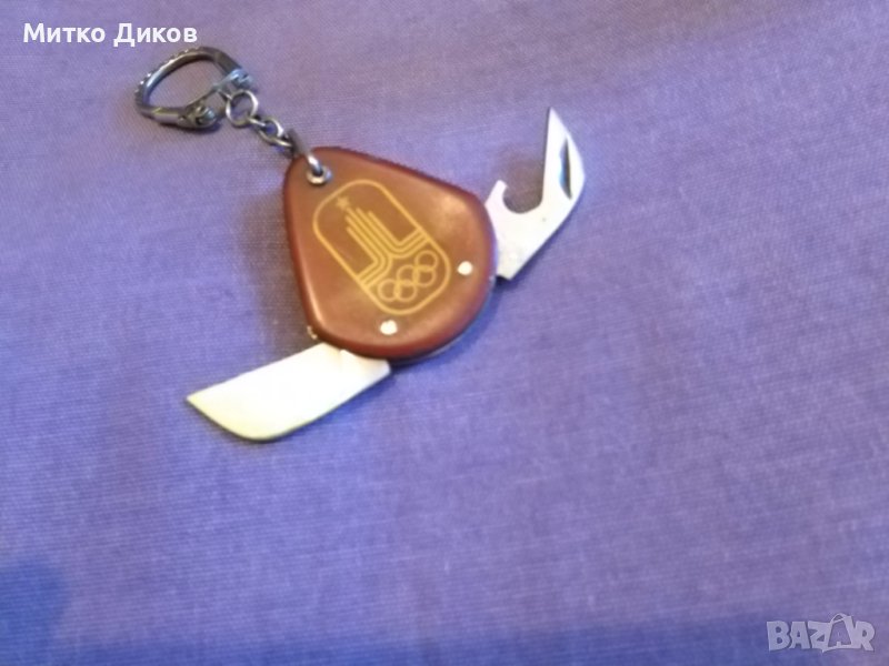 Ключодържател Петко Денев от соца рядък по случай 1980 Москва олимпиада две части-ножче и отварачка-отлично състояние-изпращам по еконт-по спиди