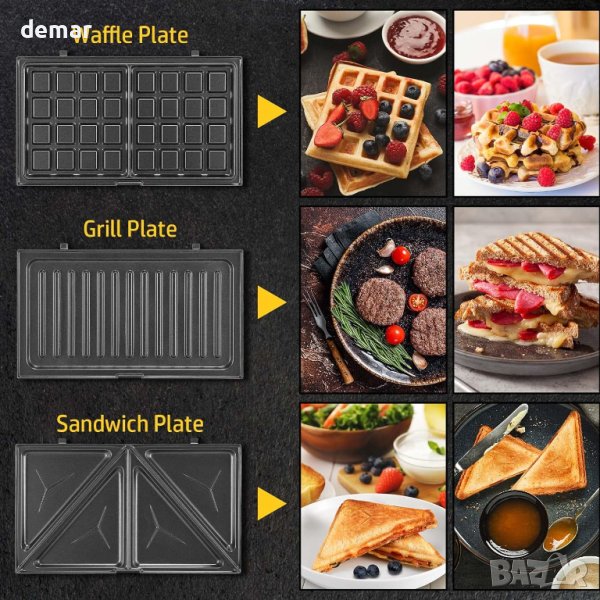 YASHE Тостер за сандвичи 3-в-1, гофретник Panini Presses Set, 750 W