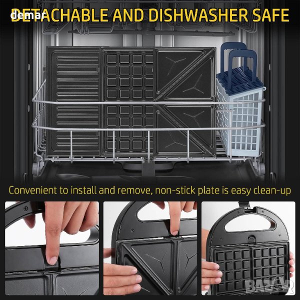 Този универсален тостер за сандвичи 3 в 1 е вашият любим уред за вкусни сандвичи, вафли, барбекюта и пържоли, като ви позволява да изследвате разнообразие от кулинарни творения „направи си сам“. Захранван от нагревателен елемент от 750 W, той се загрява бързо в рамките на 3-4 минути, осигурявайки равномерно готвене за перфектната хрупкава външност и нежна вътрешност. Оборудван с индикаторни светлини за включване и предварително загряване, той спестява догадките относно времето за готвене. Комплектът включва три чифта разглобяеми плочи - плочи за сандвичи, вафли и грил - всички незалепващи за безпроблемно готвене и почистване. Тези чинии могат да се мият в съдомиялна машина, което прави почистването лесно, а компактният дизайн прави съхранението удобно. Проектиран за безопасност и лесна употреба, той разполага с хладна на допир дръжка и противоплъзгащи се крачета, което го прави идеален както за готварски приключения на закрито, така и на открито. Тази машина за сандвичи е прекрасен подарък, предлагащ радостта от бързи, вкусни и разнообразни варианти за хранене на вашите близки.