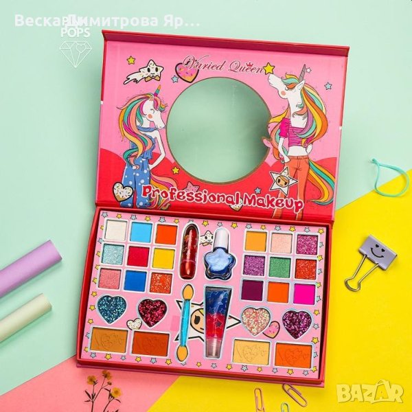 🎨👧✨ Палитра с детски гримове 30в1 - едно магично съкровище за всяка млада звезда! Включва разнообразие от цветове, текстури и аксесоари, които позволяват на децата да създадат безбройни стилове и образи за игра и забавление! 💄🌟🎉. Цена 28 лв.