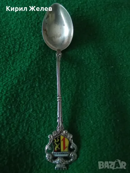 MANNHEIM СТАРА НЕМСКА КОЛЕКЦИОНЕРСКА ЕМАЙЛИРАНА СРЕБЪРНА ЛЪЖИЧКА За КАФЕ СРЕБРО 800 ПРОБА 42986