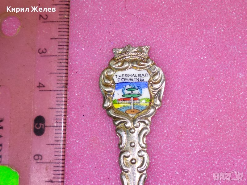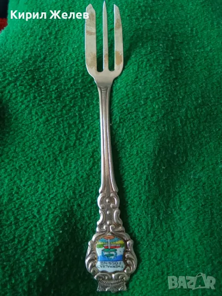 THERMAL BAD FUSSING СТАРА ЕМАЙЛИРАНА КОЛЕКЦИОНЕРСКА ДЕСЕРТНА СРЕБЪРНА ВИЛИЧКА СРЕБРО KARO 800 42983