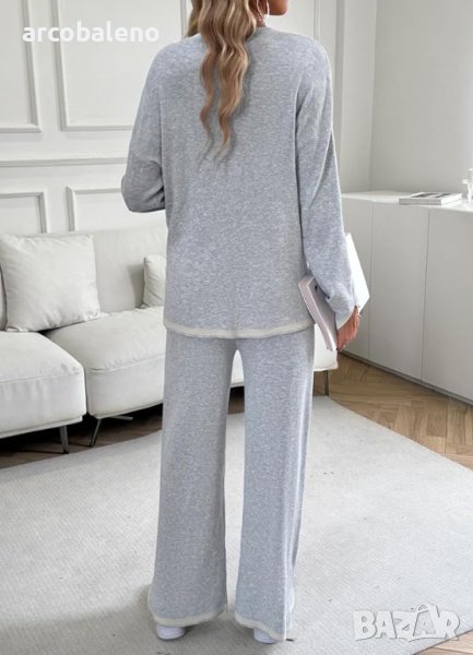 Дамски ежедневен едноцветен комплект от две части с дълги ръкави