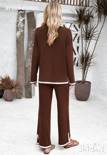 Дамски ежедневен едноцветен комплект от две части с дълги ръкави, 5цвята