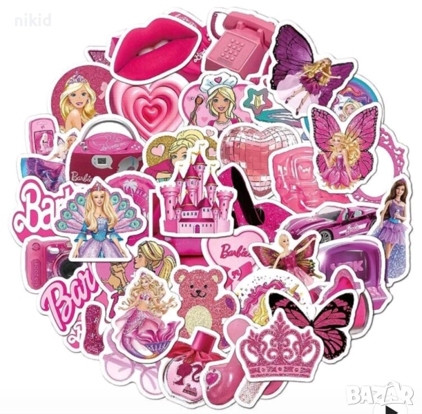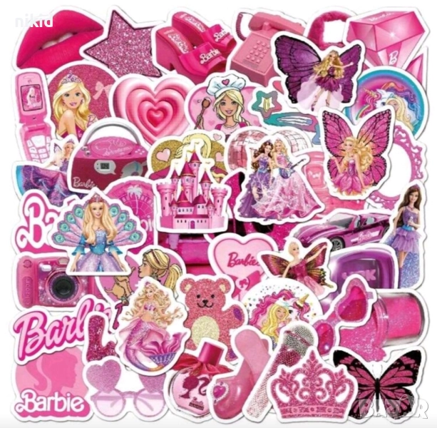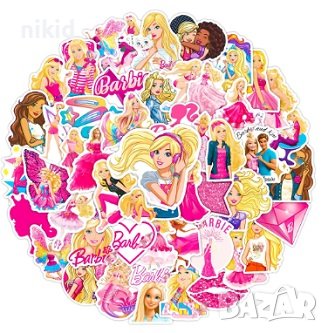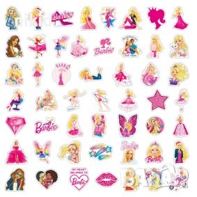 50 бр Барби Barbie самозалепващи лепенки стикери за украса декор картонена торта ръчна изработка → Обява 44376211