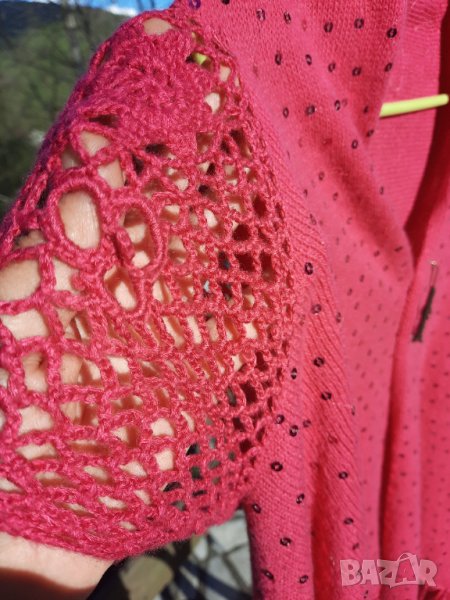 Пончо/ наметало с паети и с плетени ръкавчета. Завършва с ресни. Вълнено, топли, универсален размер. Подходящо за S, M, L, XL.