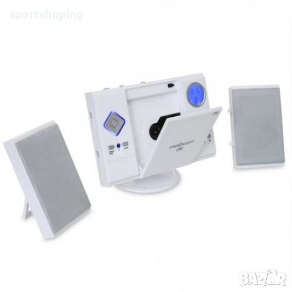 Вертикална стерео система с тонколони. MP3 съвместим CD плеър, MP3 съвместими USB и SD входове и AUX вход.