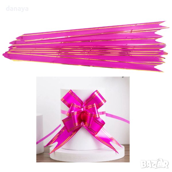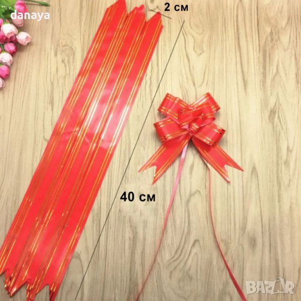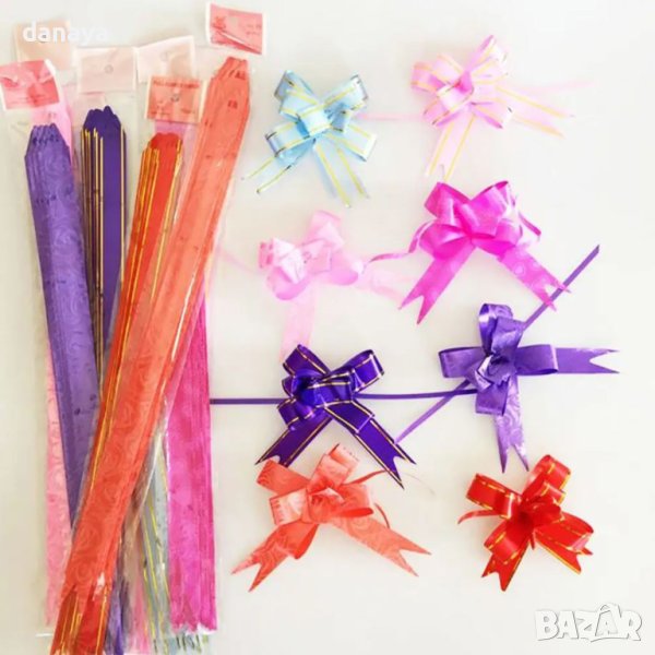 Издърпваща се панделка за декорация, 10 броя. Панделки за подаръци. Дърпащите панделки добавят финален щрих, цвят и текстура към празничната декорации за дома, аранжирането на букети и декорирането на подаръци. Те са бързи и лесни за направа, нужно е само 1 издърпване и връзване в края. Размерът на готовата панделка е 7 x 12 cm.