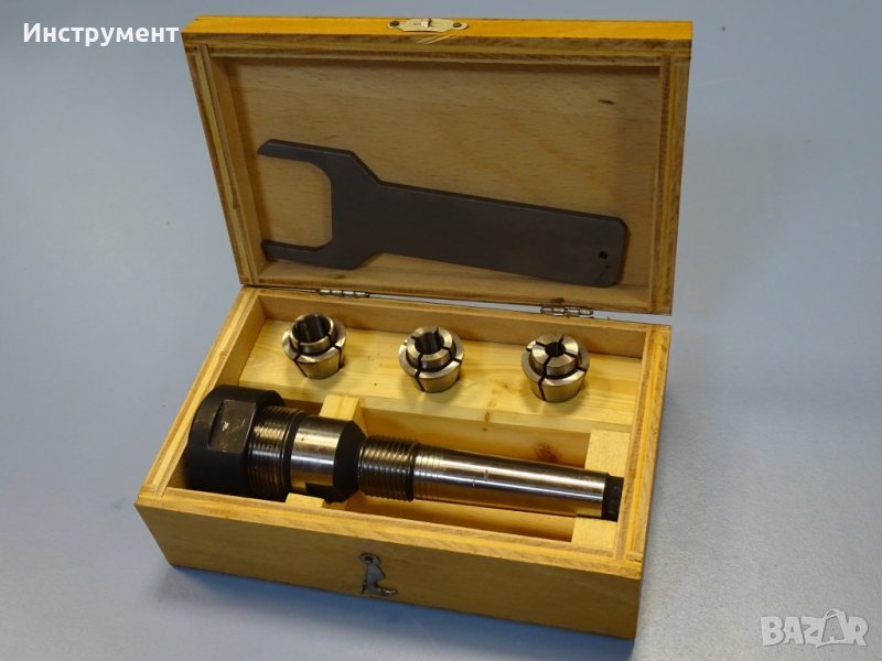 Предлагаме нов комплект състоящ се от цангодържач с 3 цанги, българско производство на завод "Болшевик" гр.Габрово.