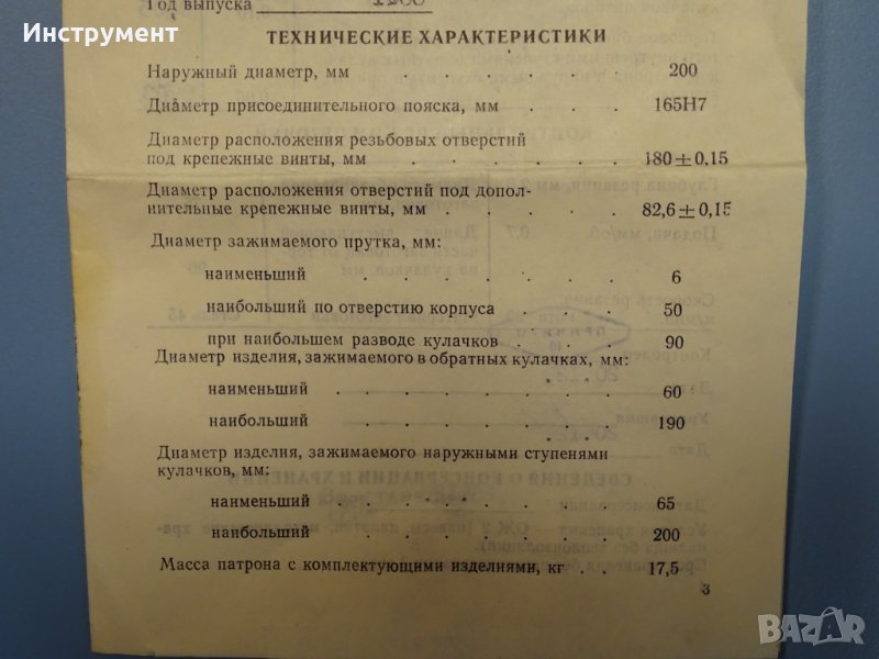 Универсалът се предлага с комплект 3-прави и 3-обратни челюсти, ключ, фиксиращи болтове и техническа документация.
