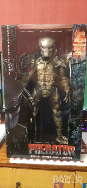 NECA. Ето го и ужасяващия хищник Jungle Hunter, който е готов да залови поредната си жертва. Той е опасен извънземен вид, който се слави с прозвището „Демонът, който прави трофеи от хора“. Характеризира се с това, че ловува други опасни създания за спорт и чест. Хищниците са разумна хуманоидна раса, която живее на планета, подобна на Земята, но притежава огромно ниво на технологичен напредък. Дизайнът на екшън фигурата е вдъхновен от оригиналния филм, излязъл през 1987 г.