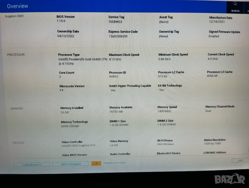 Дъно: DELL /Chipset: B560/
