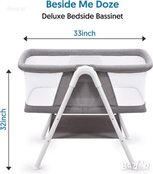 Универсално преносимо креватче, идеално за позициониране до леглото, дивана, стола или външната част на вътрешния двор, като гарантира, че новороденото ви е винаги наблизо. Неговите лесни за миене пластмасови части правят почистването лесно, докато кърпата и тъканта на коша могат да се перат удобно в пералня. С удобна височина, съвместима с повечето легла, можете да сте спокойни, знаейки, че бебето ви е наблизо, без да се притеснявате, че е в средата. Идеален универсален начален кош за пристигането на вашето новородено.