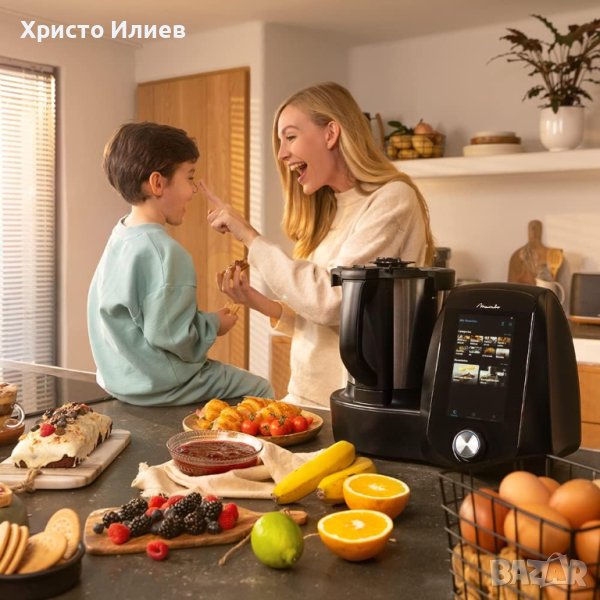 Мултифункционален кухненски робот с WiFi свързаност и 30 функции: трошене, кълцане, кълцане, пържене, смилане, шприцване, настъргване, претопляне, разбиване, разбиване, кисело мляко, смесване, готвене, разбъркване, задушаване, постери, конфита, месене, готвене на ниска температура, поддържане на топлина, ферментация, бавно мамбо, кухня с прецизност до степен, кухня в банята водниста, бавно кипене, вода с нулева скорост и има туртуртуртуракция.