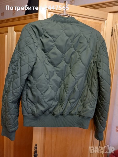 Дамско яке олекотено,цвят тъмно зелен,размер 38,без забележки, гръдна обиколка 109см, дължина ръкав 62 см,обща дължина 61см.Изработка е качествена.