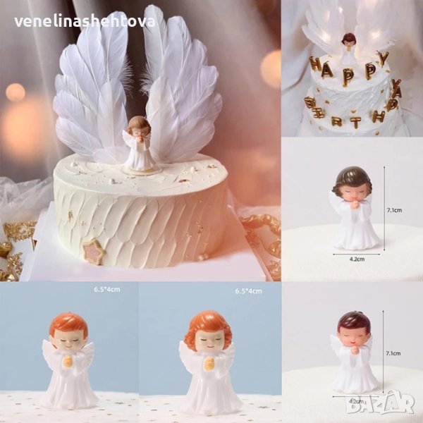 Малка фигурка ангел за украса на торта, подходяща за детски рожден ден, кръщене за момче или момиче,заедно с топер ангелски крила.