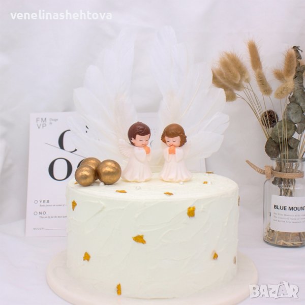 Фигурка за торта ангел момче момиче с топер ангелски крила