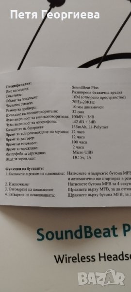 Нови Hi-fi стерео слушалки SoundBeat Plus, производител "Tesan International" ("ttec") за музика и разговори с GSM. Опаковката включва: слушалки с ергономичен дизайн, зарядно с USB порт, резервни тапички за слушалките и ръководство за употреба.
