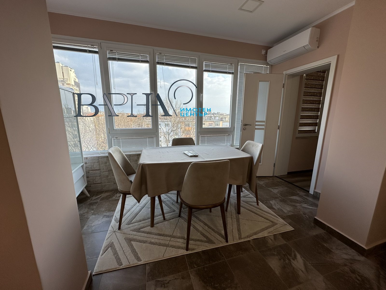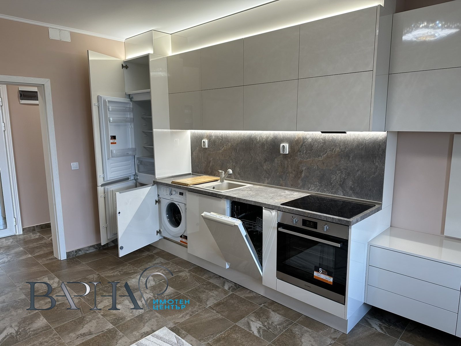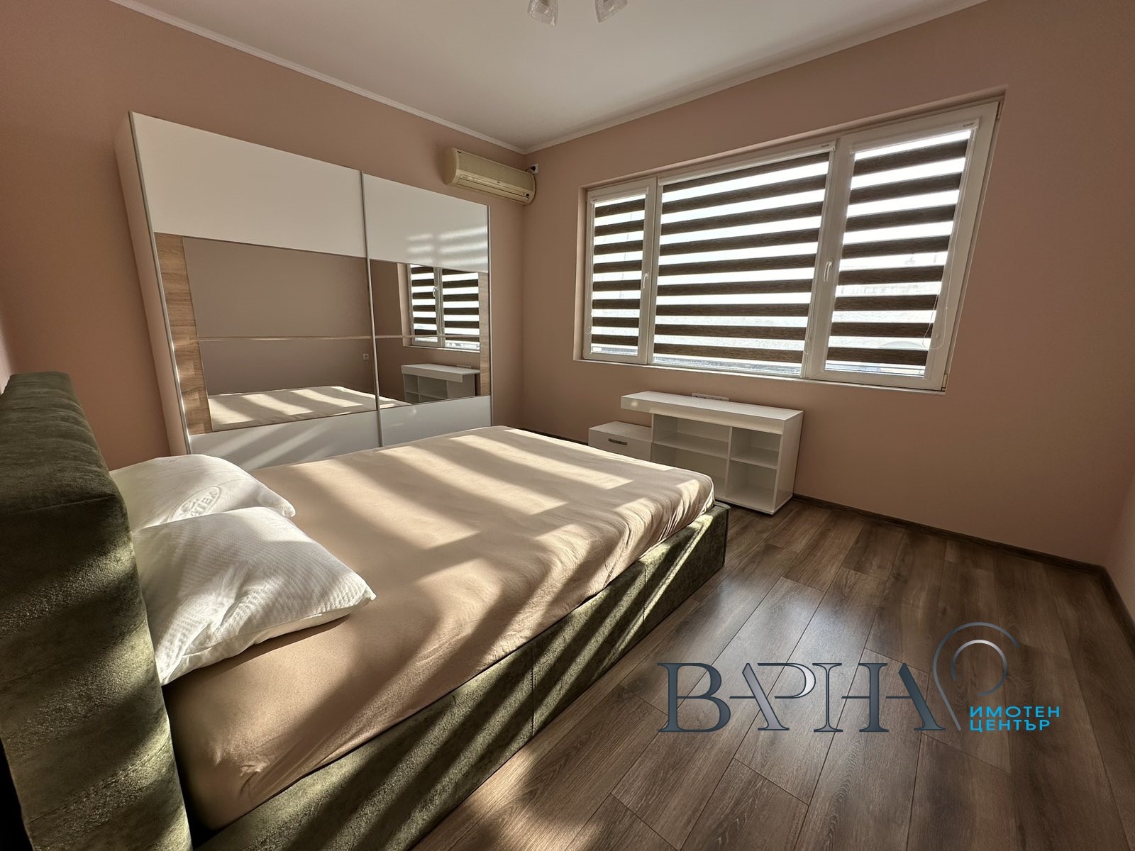 www.youtube.com/watch?v=7Wg4IFlcCgY 'Имотен център Варна' представя на Вашето внимание ЕКСКЛУЗИВНО: чисто нов тристаен апартамент под наем в район Чаталджа, на изключително комуникативно място, в непосредствена близост до Морска градина, големи хранителни магазини, детски градини, училища, площадки, същевременно на тиха и спокойна улица, но и в близост до главни пътни артерии! Ситуирано на висок етаж, жилището предлага на своите бъдещи наематели голямо количество дневна светлина и топлина, за което също допринася и цялостното саниране на сградата! Апартаментът се състои от входно антре, голяма дневна, две просторни и светли спални, килер и баня с тоалетна! Налично е абсолютно цялото необходимо обзавеждане, като акцент поставяме на чисто новите вградени хладилник с фризер, съдомиялна машина и пералня, а отоплението и охлаждането се осъществяват чрез три енергоспестяващи климатика във всяка стая! Възможно е закупуването на телевизори! Ако желаете да се насладите на живот в чисто ново жилище на крачка от всичко необходимо, това може да бъде възможно само срещу 1200лв. месечен наем! За повече информация, оглед и други актуални предложения, моля обадете се на посочения телефонен номер!