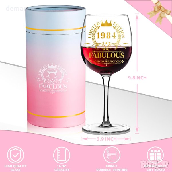 Чашата за вино Vocavi Fabulous Wine Glass е най-добрият подарък за жени, които излъчват приказност и заслужават изискан подарък. Отпразнувайте юбилея със стил с тази персонализирана чаша за вино, включваща фразата „19х4 Fabulous“ за нотка хумор и увереност с всяка глътка. Опакована в изискана подаръчна кутия, тази чаша за вино е направена от първокласни материали, осигуряващи издръжливост и дълготрайност, което я прави красив спомен за майка, сестра, съпруга или приятели. С капацитет от 455 милилитра, тя е перфектна за всяка напитка, от вино до коктейли, добавяйки допълнителен специален щрих към нейния важен рожден ден.