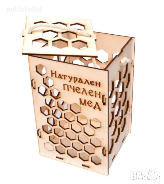 Размери: 16см Х 10см Х 10см, с надпис ”Натурален пчелен мед”
