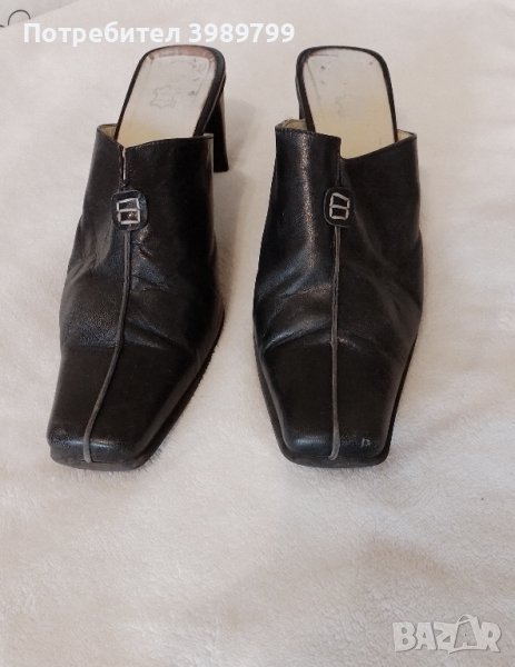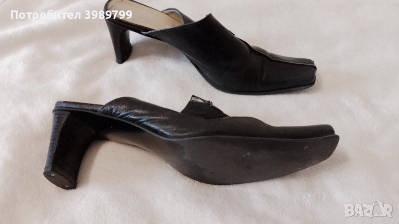 Стилни италиански дамски обувки, естествена кожа. Ток - 6см. Тип сабо, елегантни, №38-39. Обувани 1-2пъти. Запазени.