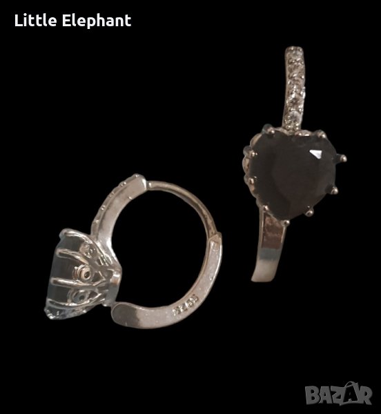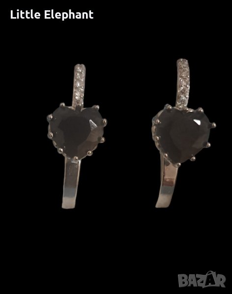 Сребърни обеци сърца с кристали,black and white,колекция "Hearts"/нови → Обява 44389688