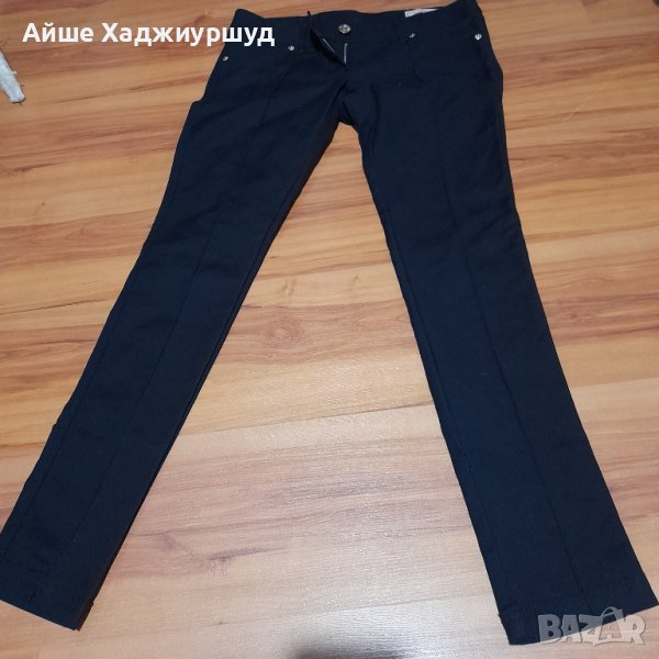 Прекрасен плътен черен детски панталон за момичета,материя 53%памук,44%найлон,3% еластан.С гайки за колан, два задни джоба,къс цип и едно копче.Цялата дължина на панталона е 92 см.