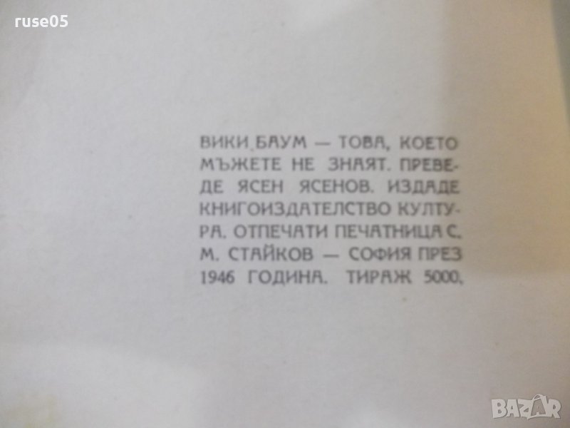 Книга "Това , което мъжете не знаят - Вики Баум" - 296 стр. → Обява 44391520