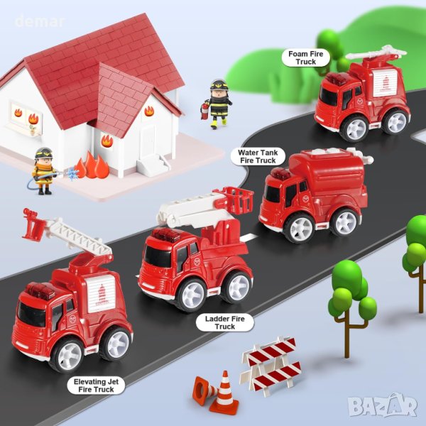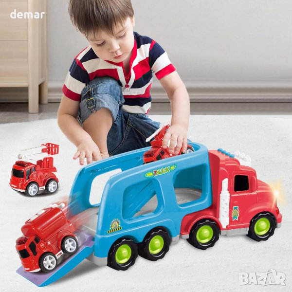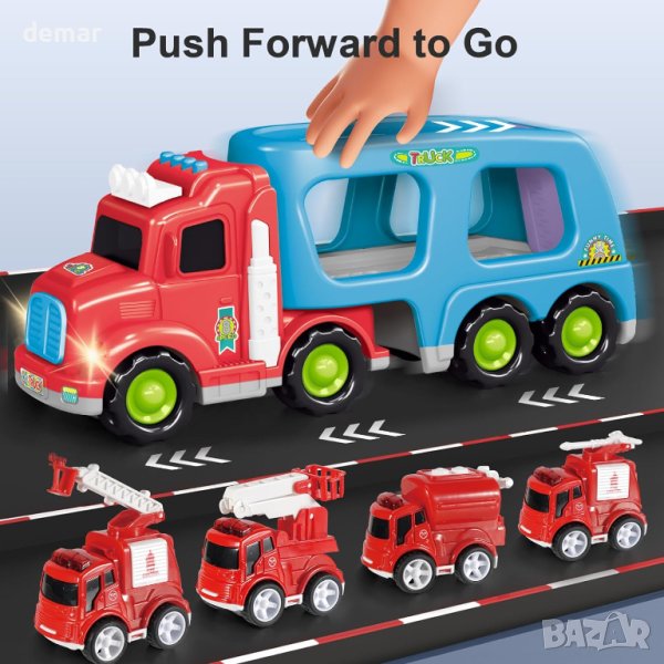 LEYAOYAO Камион с 4 противопожарни коли със светлини и звуци, играчка за малки деца