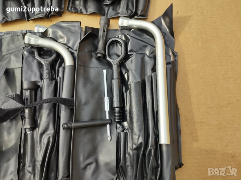 На горен ред са Кука за теглене 8K0805615,Ключ за болтове-17мм,Двойна отверка, фиксатор на джанта и звездовидна преставка за отверка. Цената е за комплекта с ДДС 79лв