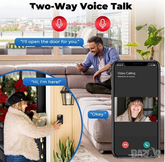 вграден микрофон можете да виждате и да говорите с посетителите си по