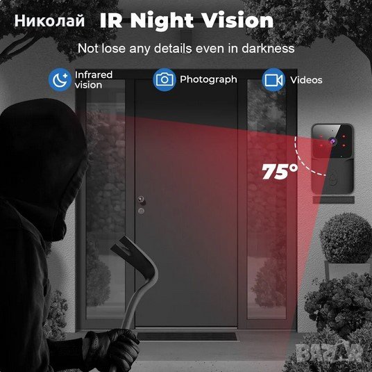 вратата, той може да заснеме снимката на посетителя и да запише записа в
