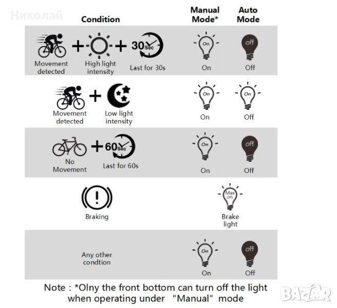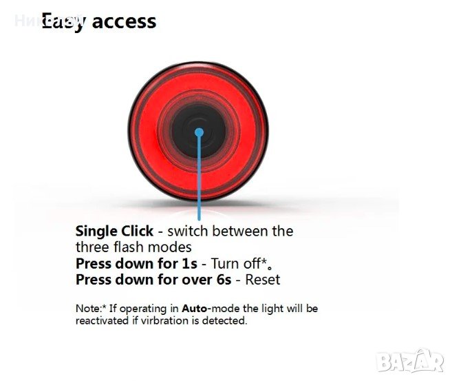 тя автоматично се изключва след 30 секунди след облъчване с ярка светлина.