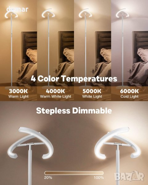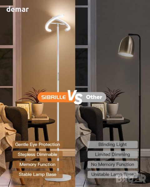 Стилната подова лампа SIBRILLE, истинско произведение на изкуството за вашия хол или спалня. Със своя тънък и елегантен дизайн, тази свободностояща лампа добавя нотка изтънченост към всяко пространство. Основата се побира удобно под повечето мебели, като оптимизира подовото пространство. Насладете се на персонализирано осветление с безстепенно затъмняване от 5% до 100% и регулируема цветова температура от 3000K топла светлина до 6000K студено бяло. Насладете се на ефективно използване на енергия с неговата изходна мощност от 20 W, еквивалентна на 100 W крушка с нажежаема жичка, осигуряваща до 1300 лумена. Управлявайте лампата без усилие с включеното дистанционно или функция за сензорно управление, с магнитен държач за удобно съхранение. Сглобяването е лесно, отнема само 5 минути, а с издръжлива конструкция и живот от 50 000 часа, тази подова лампа е създадена да издържи до 20 години при редовна употреба. Подобрете светлинното си изживяване с подовата лампа SIBRILLE.
